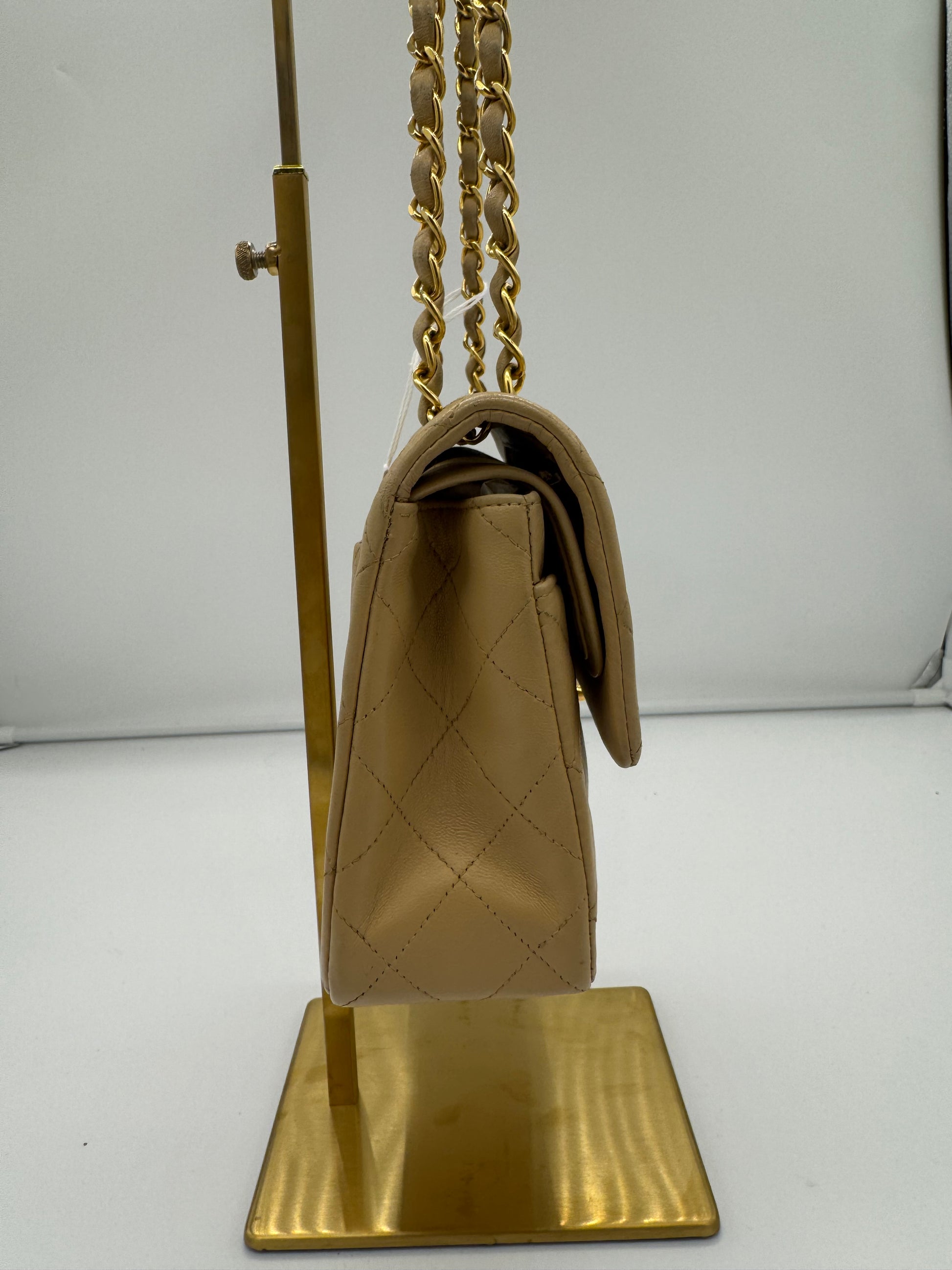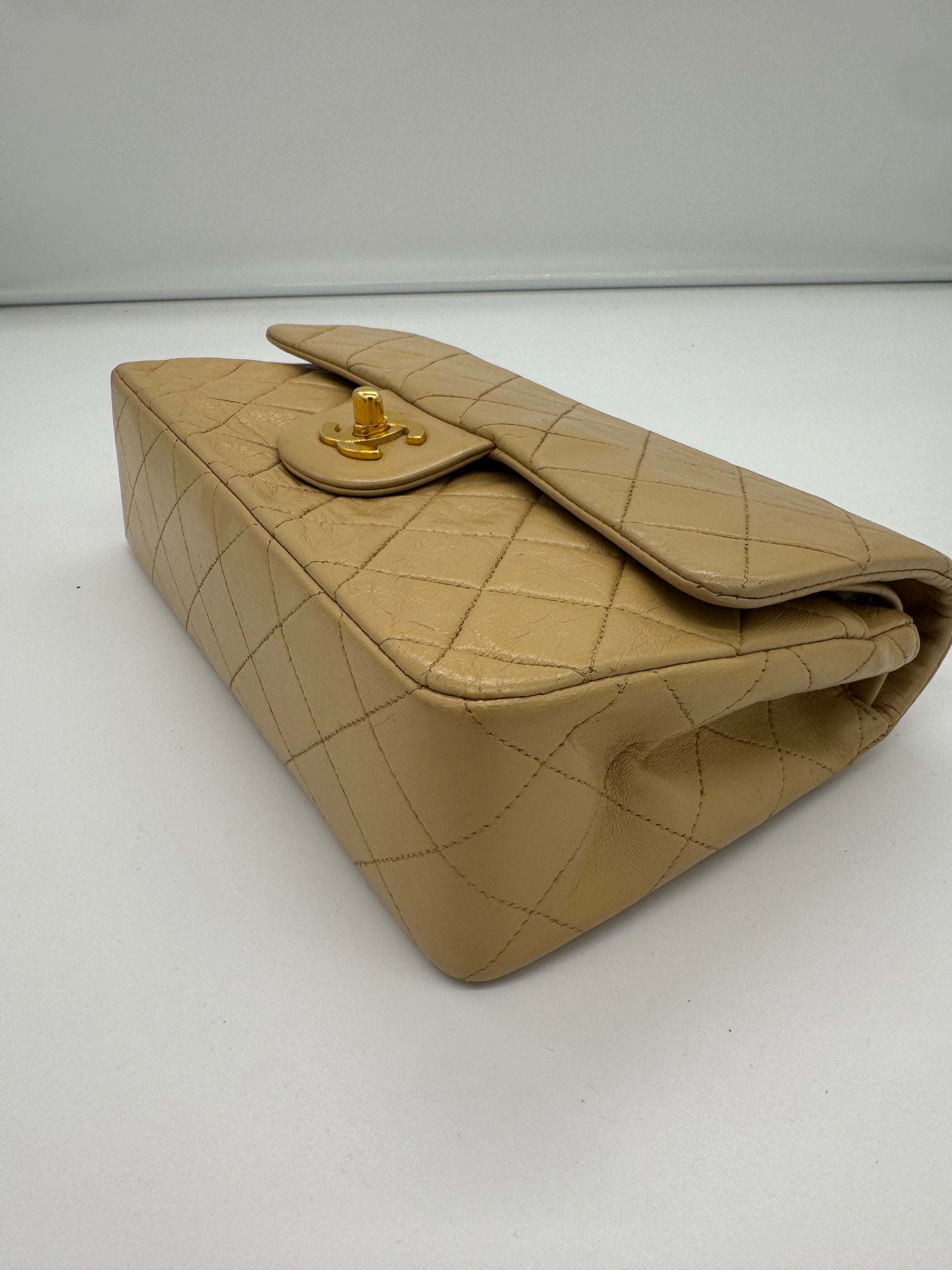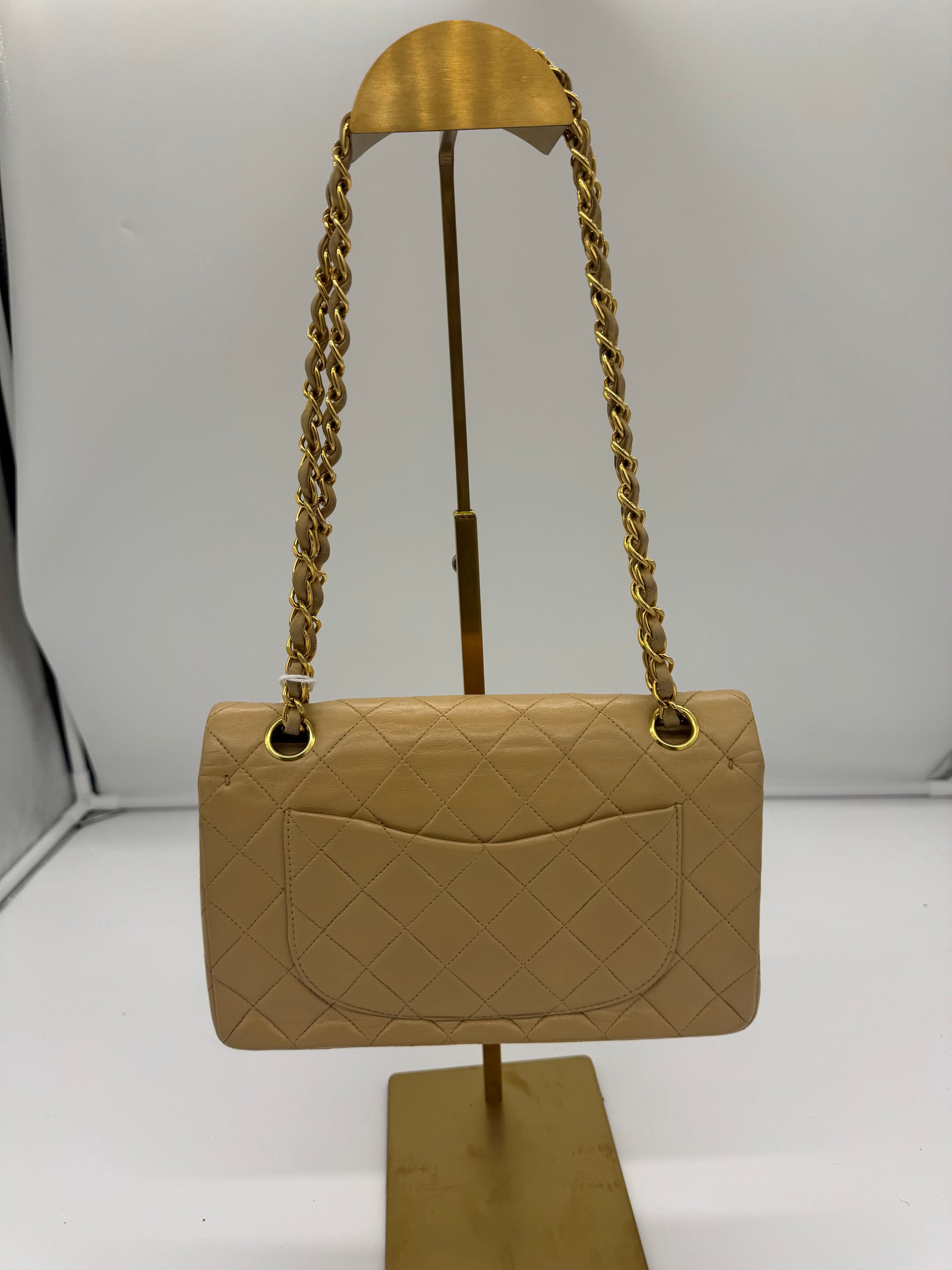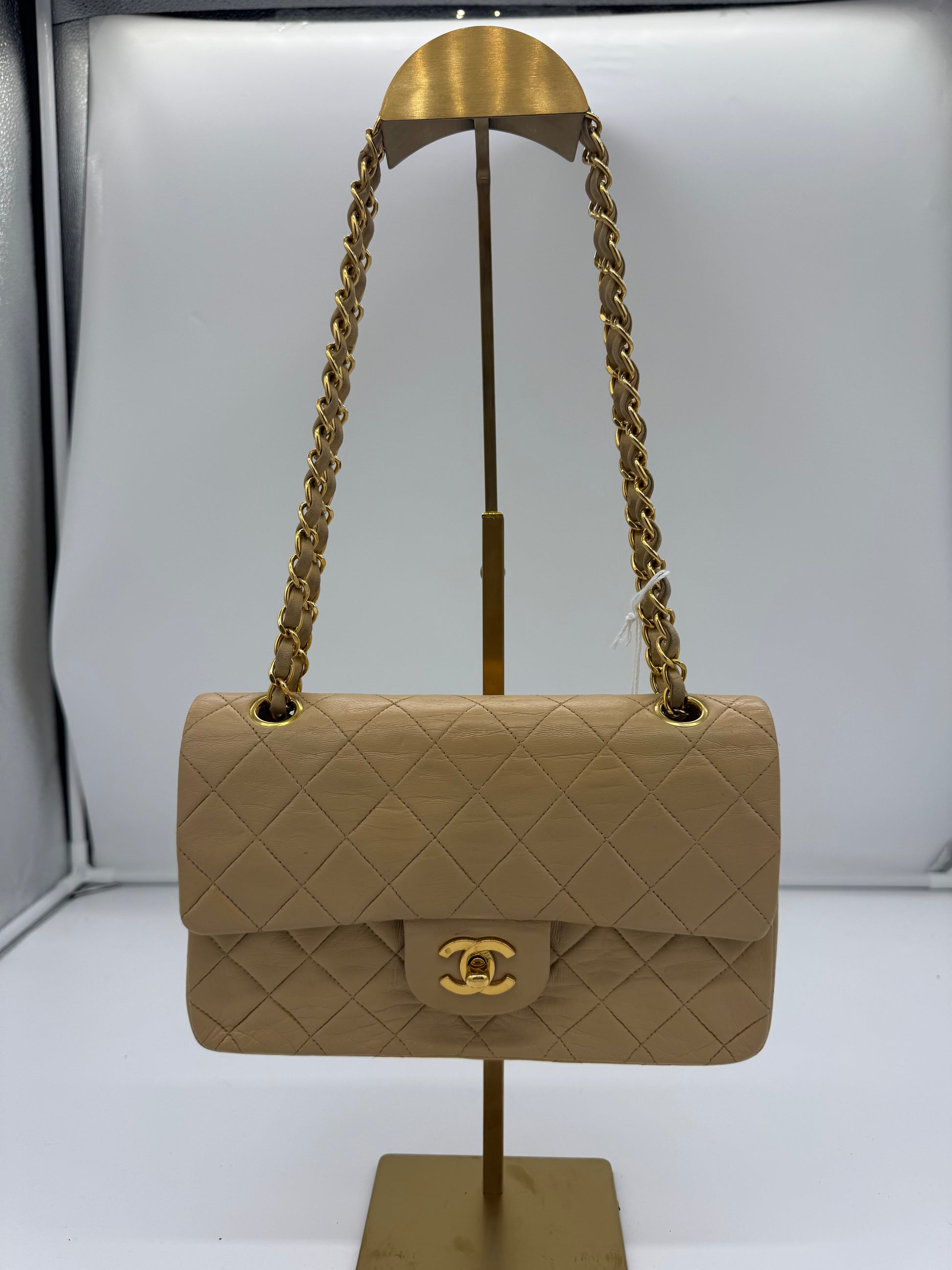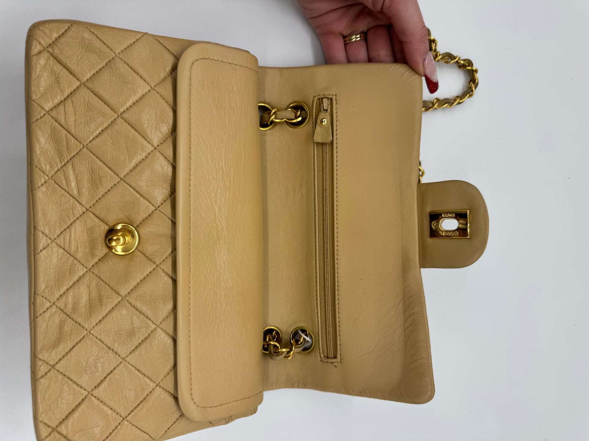 Chanel Double Flap Bag Beige Small Vintage Echtvergoldung